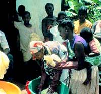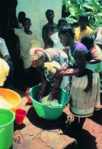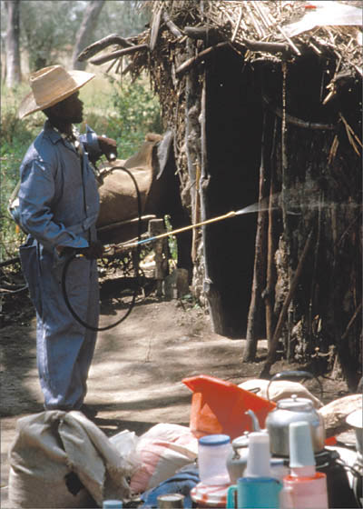 Với nghiên cứu thứ hai, các nhà khoa học đã tiến hành xem xét một số lượng lớn ba loài muỗi khác nhau là M, S và Bamako. Họ cẩn thận đọc qua 400 nghìn điểm trong toàn bộ hệ gen của 3 loài muỗi trên để tìm ra những sự khác nhau và so sánh những điểm này với nhau. Mục tiêu của công việc này là tìm hiểu xem ba loài muỗi trên đã và đang tiến hóa như thế nào. Phun tẩm hóa chất hiện đang là một trong những phương pháp phòng chống vector truyền bệnh hữu hiệu nhất. (Ảnh: Olivier Martel/TDR/WHO, syngenta.com) |