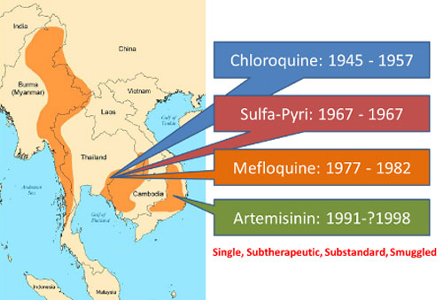 Ký sinh trùng sốt rét kháng thuốc trong những năm 1960 có nguồn gốc từ Đông Nam Á và từ đó lây lan qua Myanmar đến Ấn Độ và sau đó với phần còn lại của thế giới - nơi nó giết chết hàng triệu người. Các nghiên cứu mới đây cho thấy lịch sử đang lặp lại với ký sinh trùng P. falciparum kháng thuốc artemisinin. Chúng ta đang phải đối mặt với các mối đe dọa sắp xảy ra do kháng thuốc lan rộng vào Ấn Độ, với hàng ngàn sinh mạng bị nguy hiểm. Do đó, rất cần một nỗ lực quốc tế mạnh mẽ hơn để giải quyết vấn đề này tại khu vực biên giới.