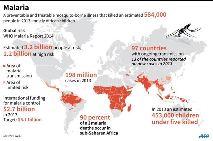 Riêng về sốt rét, từ 2000-2012, các nỗ lực ngăn chặn đã cho phép giảm tỷ lệ tử vong đến 45% trên toàn thế giới, riêng tại Châu Phi là 49%, bất chấp việc số lượng cư dân thuộc các nhóm cơ có nguy cơ tăng lên. Tiến bộ kể trên đạt được là do có nhiều đầu tư quốc tế chống sốt rét trong vòng thập kỷ qua. Cụ thể là từ 100 triệu đô la năm 2000 lên đến gần 2 tỷ đô la năm 2012, theo Bác sĩ Robert Newman, Giám đốc chương trình thế giới chống sốt rét của WHO. Bên cạnh đó là khoản đầu tư 500 triệu đô la từ chính các nước có liên quan.