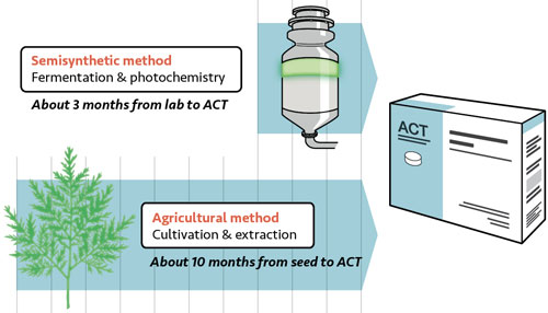 Do vậy, các nhà khoa học đã cố gắng nghiên cứu để phát hiện ra thuốc mới nhằm thay thế thuốc đang sử dụng bằng con đường tổng hợp thuốc mới trên cơ sở gắn cấu trúc hóa học của artemisinin với cấu trúc phân tử hữu cơ giúp duy trì sự ổn định của thuốc dẫn tới kéo dài thời gian phân giải thuốc để tiêu diệt và làm giảm sự xuất hiện trở lại của ký sinh trùng gây bệnh sốt rét trong máu.
