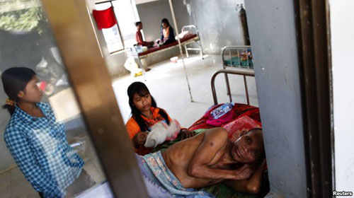 Một bệnh nhân sốt rét được chăm sóc trong bệnh viện duy nhất tại Pailin, Tây Campuchia .
