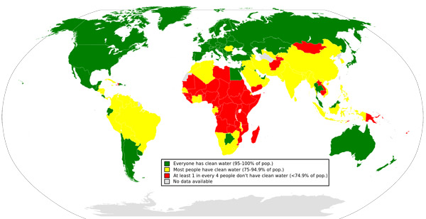 | Bản đồ chỉ số dân mỗi quốc gia tiếp cận được với nước sạch theo tỷ lệ phần trăm |