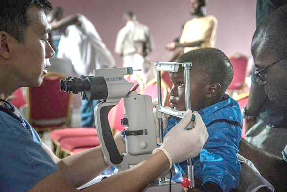 Christian đã được bác sĩ Steven Yeh kiểm tra mắt. WHO/ J. D. Kannah