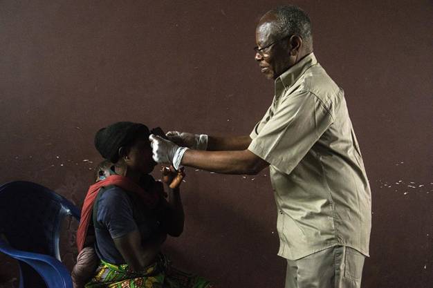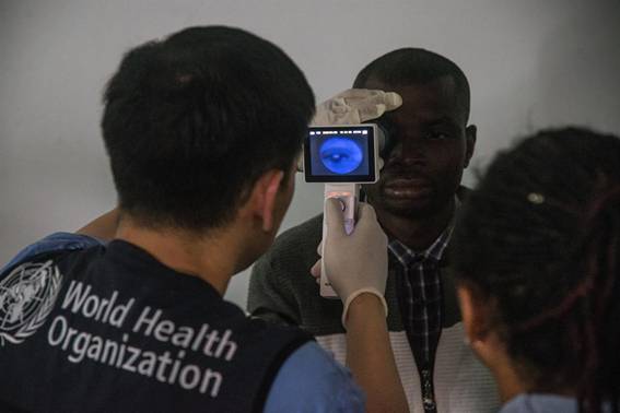 Centrine thực hiện một xét nghiệm về mắt để kiểm tra xem có bất kỳ biến chứng nào sau khi cô sống sót do Ebola hay không.WHO / J. D. Kannah