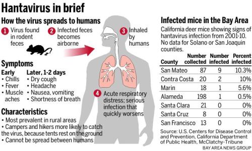Ngày 21-11, Trung tâm Kiểm soát và phòng bệnh Mỹ (CDC) thông báo vừa có thêm một người nhiễm virus Hanta do chuột cắn. Như vậy, tính đến nay nước Mỹ đã có 3 người chết vì và 10 người nhiễm bệnh do virus lây truyền từ chuột. Đợt xuất hiện gần nhất là vào mùa hè năm nay tại Công viên Quốc gia Yosemite, California (Mỹ). Theo ước tính, khoảng 10.000 người có nguy cơ bị hội chứng viêm phổi do nhiễm virus Hanta trong khoảng thời gian từ tháng 6 đến tháng 8 vừa qua, trong số này có 2.500 du khách nước ngoài. Vì vậy, giới chức y tế Mỹ đã gửi thông báo cho 39 quốc gia, phần lớn thuộc Liên hiệp châu Âu, cho biết những công dân đã sống trong các lều cách nhiệt thuộc làng Curry của Yosemite vào mùa hè này có thể đã bị nhiễm Hantavirus từ chuột nai. Đây là loài chuột mang virus Hanta rất phổ biến ở Châu Mỹ.