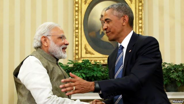 Tổng thống Mỹ Barack Obama (bên phải) bắt tay Thủ tướng Ấn Độ Narendra Modi