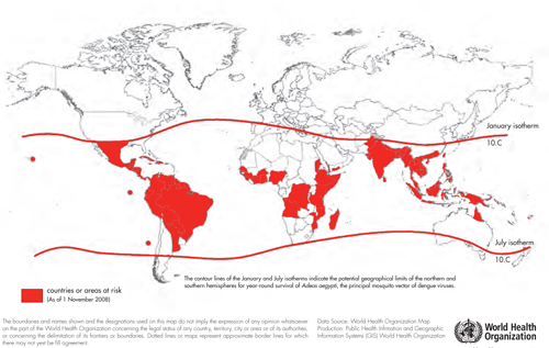 Kinh nghiệm từ nhiều năm trước cho thấy rằng các quốc gia như Ấn Độ, kể cả thủ đô New Delhi, dịch sốt xuất huyết bắt đầu tăng sớm từ tháng 8 sau các đợt gió mùa. Dengue là một vấn đề có thể nói có liên quan đến con người, cụ thể do hành vi của con người. Điều này ảnh hưởng bởi quá trình toàn cầu hóa, phát triển đô thị không có kế hoạch và rất lộn xộn, nơi tích trữ nước nghèo nàn và điều kiện vệ sinh không đảm bảo - theo giám đốc vùng của WHO - Samlee Plianbangchang. Những yếu tố này cung cấp làm tăng thêm nơi muỗi sinh sản.