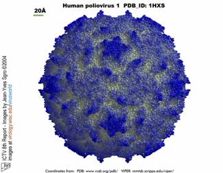 | Virus bại liệt tuyp 1 (Ảnh: virology.wisc.edu) |