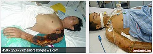 Hiện bệnh nhân nằm điều trị hồi sức tại phòng 5- khoa Ngoại chấn thương bệnh viện Đa khoa Kon Tum đã được 10 ngày nay, tình trạng sốc giảm dần, tuy nhiên tổn thương ở chân phải ngày càng nặng, chưa thoát khỏi tình trạng sốc và nhiễm khuẩn huyết, hoại tử toàn bộ da cẳng chân phải, da bong ra từng mẢng như rộp do phỏng và chưa thấy dấu hiệu phục hồi.