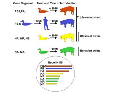 Các phân đoạn gen của virus H1N1 lây nhiễm trên vật chủ qua các thời kỳ |