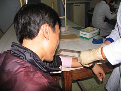 | | ThS BS Tôn Nữ Phương Anh-giảng viên bộ môn Ký sinh trùng đangthực hiện các thao tác xét nghiệm bệnh phẩm | Lấy lam xét nghiệm máu |