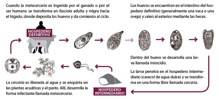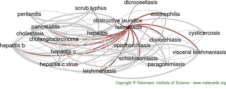 Do đặc tính của bệnh phần lớn có liên quan đến hệ thống gan mật và do đó có đặc điểm hai pha: pha ở gan (cấp tính và sán xâm nhập) và pha ở đường mật (mạn tính). Vàng da tắc mật và viêm đường mật tái phát thường xảy ra trong giai đoạn này.