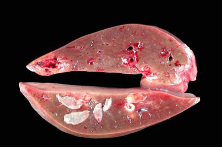 Viêm gan, áp xe gan do các loại ký sinh trùng khác như amip hoặc do vi khuẩn, giun đũa, giun đũa chó mèo Toxocara spp, ...), hoặc do vi trùng (áp xe đường mật); u gan, sỏi trong gan, sỏi đường mật, túi mật, polype túi mật, tắc mật do các nguyên nhân khác,…