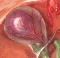 -Sau 5 ngày, bệnh nhân xuất hiện chảy máu tiêu hóa trên, kiểm tra cấp cứu nội soi cho thấy chảy máu từ OMC. Thực hiện lại ERCP, cho thấy một vùng xa của OMC bị lấp đầy bởi dị vật, không đồng nhất, đường mật dãn nhẹ. Sau khi bóc lấy cục nghẽn, một luồn máu phun raà quyết định chuyển sang mổ bụng cấp cứu;