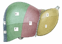 Hình 1a. Sự phân chia các thùy gan nhìn từ mặt trước của gan