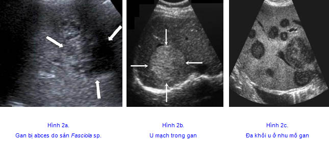 -Chẩn đoán tổn thương gan dạng SLGL bằng siêu âm có thể thấy khối tổn thương giảm âm không đồng dạng, hỗn hợp âm hoặc tăng âm không đồng dạng (nếu bệnh nhân đến muộn), bờ không rõ, trong khối có những vùng trống âm tạo nên hình ảnh “vòng Olympic”.Theo y văn, ở người bị nhiễm Fasciola spp. có tổn thương về gan và tổn thương đường mật. Cơ chế gây bệnh của SLGL F. hepatica hoặc F. gigantica gồm có: (i) Sán gây hoại tử áp xe đơn ổ hay đa ổ; (ii) Gây xơ hóa chủ mô nhu mô gan; (iii) Gây viêm gan khoảng giữa; (iv) Gây thương đường mật-nơi sán dính vào thành đường mật trong hoặc ngoài gan.