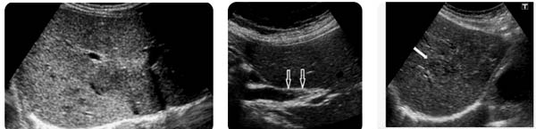 +Số còn lại thường có các kiểu hình ảnh sau: độ hồi âm của gan thô, không đồng dạng; hoặc một vùng gan có độ hồi âm tăng nhẹ so với vùng nhu mô lành xung quanh; hoặc một khối tăng âm, giới hạn rõ so với tổ chức xung quanh, trong trường hợp khối có kích thước nhỏ khó phân biệt với hình ảnh u mạch (hemangioma);