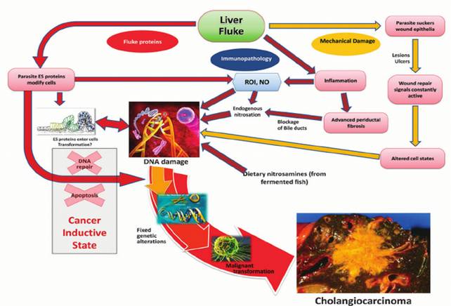 Helminths in the induction of cancer: Opisthorchis viverrini, Clonorchis sinensis and cholangiocarcinoma. Schwartz DA. Trop Geogr Med. 1980 Jun;32(2):95-100. PMID: 6252671 Similar articles Select item 1793477125.