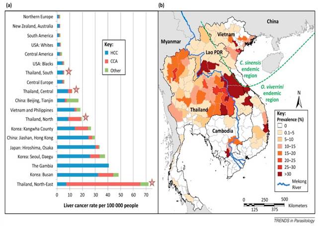 Opisthorchiasis and Opisthorchis-associated cholangiocarcinoma in Thailand and Laos. Sripa B, Bethony JM, Sithithaworn P, Kaewkes S, Mairiang E, Loukas A, Mulvenna J, Laha T, Hotez PJ, Brindley PJ. Acta Trop. 2011 Sep;120 Suppl 1:S158-68. doi: 10.1016/j.actatropica.2010.07.006. Epub 2010 Jul 23. Review. PMID: 20655862 Free PMC Article Similar articles Select item 244087756.