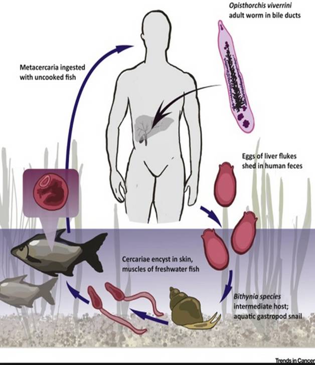 Infection with liver flukes (Opisthorchis viverrini, Opisthorchis felineus and Clonorchis sinensis). [No authors listed].IARC Monogr Eval Carcinog Risks Hum. 1994;61:121-75. Review. No abstract available. PMID: 7715069 Similar articles Select item 1571005717.