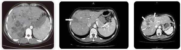 Ngoài ra, với sự trợ giúp của CT-scanner và MRI sẽ giúp thầy thuốc lâm sàng phân biệt hình ảnh giữa sán lá gan lớn Fasciola sp. với các khối thương tổn ác tínhở hệ gan mật khác. Điểm đặc biệt, trên siêu âm thường chúng ta thấy hình ảnh tổn thương trên gan mật thì với bờ viền ngoài không rõ ràng, song trên hình ảnh CT-scan hay MRI lại rất rõ ràng và tạo khối tách biệt so với nhu mô lành.