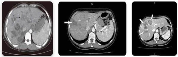 Hình 4. Hình ảnh tổn thương đa ổ abces do sán lá gan lớn trên cùng một bệnh nhân