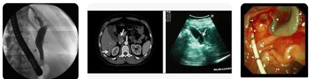 Hình 9. Phối hợp Siêu âm, CT-scan và thủ thuật ERCP trong điều trị sán lá gan lớn ở mật-tụy