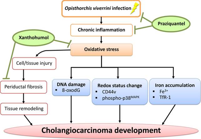 [Role of opisthorchis felineus on induction of bile duct cancer].Maksimova GA, Zhukova NA, Kashina EV, Lvova MN, Katokhin AV, Tolstikova TG, Mordvinov VA.Parazitologiia. 2015 Jan-Feb;49(1):3-11. Russian. PMID: 26016330 Similar articlesSelect item 27221919142.