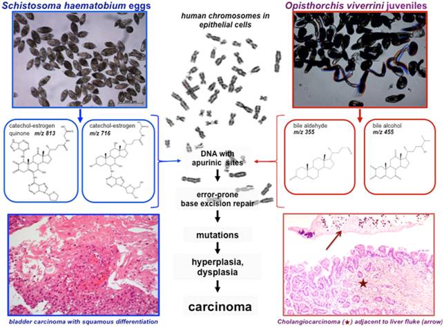 Schistosome and liver fluke derived catechol-estrogens and helminth associated cancers.