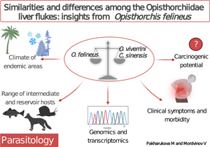 Sán lá gan nhỏ Opisthorchis felineus (Rivolta, 1884) là một thành viên của tam giác phả hệ di truyền liên quan về mặt dịch tễ rất quan trọng của sán lá thuộc họ Opisthorchiidae, điều này cũng bao gồm cả O. viverrini (Poirier, 1886) và Clonorchis sinensis (Loos, 1907). Dù có điểm tương đồng về chu kỳ sinh học và phát triển, song các sán lá thuộc họ Opisthorchiidae cũng có điểm khác nhau đáng kể. Hai loài O. viverrini và C. sinensis được phân loại vào nhóm 1A các tác nhân sinh học gây ung thư, trong khi đó loài O. felineus thuộc nhóm 3A. Các nhà khoa học tập trung vào các câu hỏi sau: Liệu có sự khác biệt thật sự về tính sinh ung thư trong số 3 loài sán lá gan trên? Liệu chăng có sự khác biệt về thời tiết khí hậu vùng lưu hành của ba loài, đặc điểm khác biệt trong chu kỳ, phạm vi vật chủ trung gian và đặc điểm di truyền của tác nhân gây bệnh và triệu chứng lâm sàng và tỷ lệ mắc bệnh khi nhiễm trùng ở người?Nếu có sự thảo luận về các vấn đề này có thể kích thích phát triển mới hơn trong các nghiên cứu so sánh về bệnh sinh của sán lá gan nhỏ và nên định loài để đánh giá bệnh sinh của hai loài Opisthorchisspp. và Clonorchis spp.