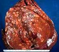 +  !important; Kết quả đại thể và vi thể cho thấy nhiều tổn thương màu trắng với đường kính kích thước 1-3cm trên bề mặt của gan (P) và (T) kèm theo bụng báng nhẹ;