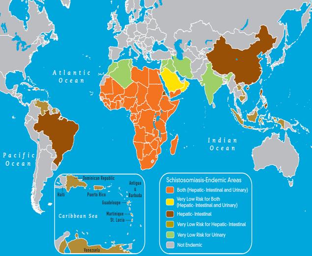 (i) Trên các bản đồ phân bố bệnh sán máng ở trên cho thấy hình ảnh Việt Nam có lưu hành ? và nguy cơ thấp với loài sán máng gây bệnh ở hệ tiêu hóa-gan, vậy các số liệu này ở đâu mà các nhà khoa học đã vẽ lên bản đồ này?