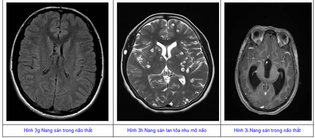 Trong nhu mô: Các nang sán trong nhu mô thường có liên quan đến điểm nối chât trắng và chất xám. Chúng thường có kích thước nhỏ ~10mm.