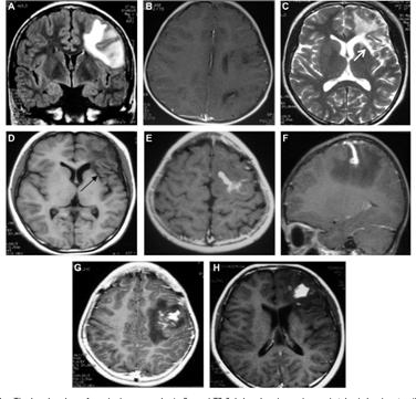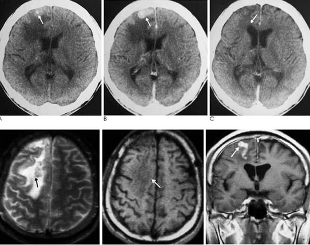 Hình 10-11. Một số thương tổn do sán nhái Spirometra spp. trên cơ quan thần kinh