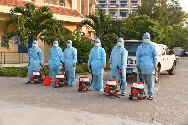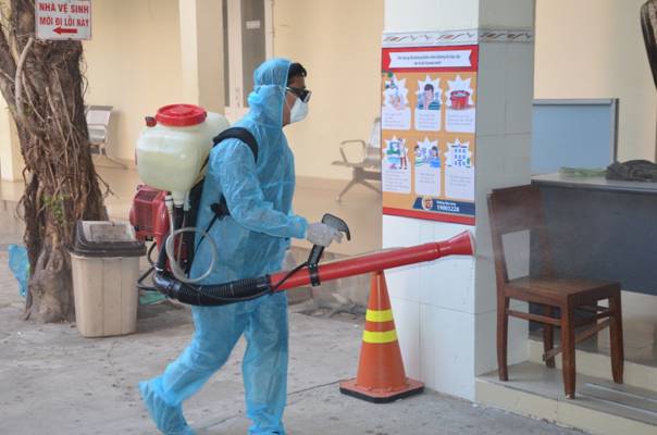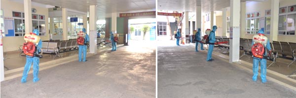 Cán bộ Viện tiến hành khử trùng tại Phòng khám, khu vực xung quanh Phòng khám, Nhà thuốc,