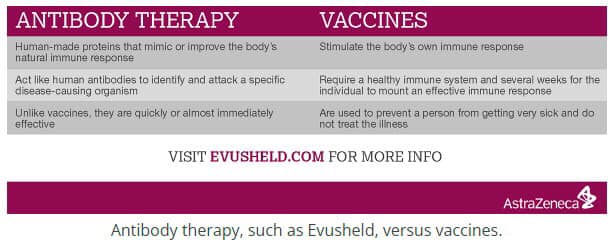 Evusheld (hai lọ đóng gói chung gồm tixagevimab + cilgavimab - là loại kháng thể đơn dòng dự phòng phơi nhiễm COVID-19 đầu tiên trên thế giới được sự đồng ý EUA của Tập đoàn dược của AstraZeneca, đặc biệt bảo vệ nhóm người dễ bị nguy cơ cao trước COVID-19 (người có bệnh nền suy gan, suy thận, đái tháo đường, COPD, HIV, viêm khớp tự miễn, bệnh nhân ung thư, bệnh nhân ghép tạng, suy giảm miễn dịch (SGMD) từ vừa đến nặng, bệnh hệ thống, viêm khớp mạn tính, người không thể tiêm vaccine COVID-19do tiền sử đã từng xảy ra tác dụng phụ nghiêm trọng, sốc phan vệ hoặc không thể sản sinh đủ kháng thể ngừa COVID-19 dù đã tiêm đủ vaccine) giúp có kháng thể nanh chóng, bảo vệ sức khỏe, giảm nhập viện và tử vong.