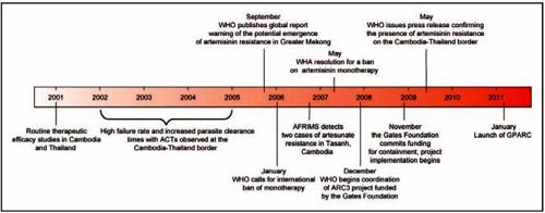 Các bước phải tiến hành nhanh chóng để bảo quản về điều trị bằng thuốc sốt rét, đó là lý do tại sao WHO và Roll Back Malaria Partnership khởi động một kế hoạch ngăn chặn kháng thuốc GPARC (Global Plan for Artemisinin Resistance Containment) tại Geneva vào ngày 12 tháng 1 năm 2011.