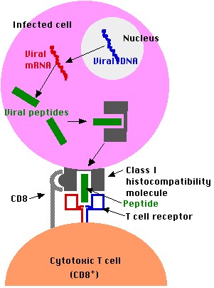 Tế bào gây độc T CD8+ nhận diện và tiêu diệt tế bào nhiễm virút |
