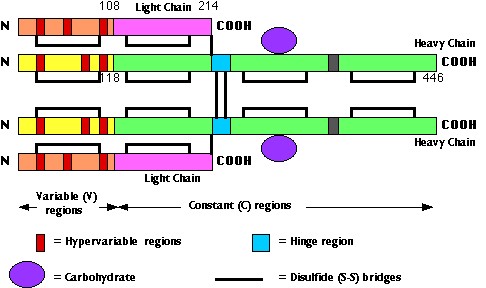 KT là một phân tử đối xứng, cấu tạo bởi 2 chuỗi nặng và hai chuỗi nhẹ khác nhau đôi một.