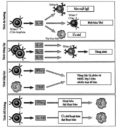 Đặc tính chính của các cytokin: Cytokin bài tiết với lượng nhỏ và tự hạn chế; các phản ứng của cytokin thường đa hướng và trùng lặp; cytokin này thường ảnh hưởng đến sinh tổng hợp và tác động của cytokin khác; tác động của cytokins có thể mang tính cục bộ hoặc hệ thống.