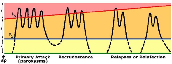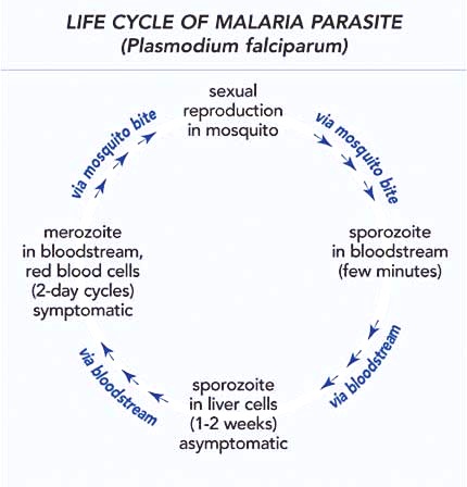 Trong quá trình phát triển của ký sinh trùng trong cơ thể, chỉ có giai đoạn thoa trùng nhạy cảm với tế bào gan, còn giai đoạn phân liệt và tiểu thể hoa cúc lại nhạy cảm với hồng cầu ở máu ngoại vi hơn là tế bào gan.