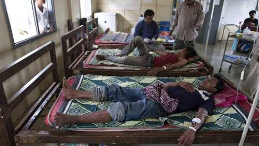 Bệnh nhân sốt rét kháng thuốc đang được điều trị ở một trạm y tế tại khu vực biên giới Thái – Campuchia. (Ảnh: Associated Press) |