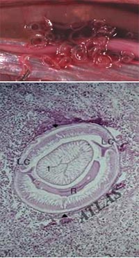 7.Mattiucci S., Nascetti G., Tortini E., Ramadori L., Abaunza P. & Paggi L (2000). "Composition and structure of metazoan parasitic communities of European hake (Merluccius merluccius) from Mediterranean and Atlantic waters: stock implications". Parassitologia 42 (S1): 176–86.