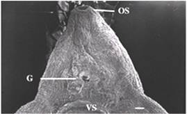Hình 5: Các sán kháng TCBZ được điều trị bằngTCBZ.SO(15μg/ml)và verapamil (1 × 10− 4M) trong 24 giờ. Bề mặt vỏ sán bị loại bỏ và lộ ra lớp đáy | Hình. 6: Các sán kháng TCBZ được điều trị bằng TCBZ.SO (15 μg/ml) trong 24 giờ. Cấu trúc bề mặt bỏ cho thấy chưa bị hủy hoại |