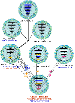 Hình 2. Sơ đồ tiến hóa phân tử tái tổ hợp trao đổi (reassortment) tạo nên virus A/H1N1 – 2009 gây đại dịch hiện nay từ nhiều nguồn gen khác nhau (thiết kế lại dựa trên tài liệu tham khảo). |