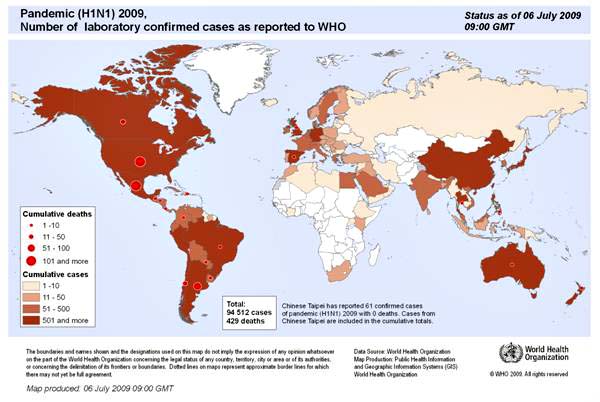 Từ tháng 4/2009 đến nay, một phân dòng mới của virus cúm A/H1N1 bùng nổ ở Mexico, nhanh chóng lan sang nhiều nước Bắc Mỹ, châu Âu và đến nay, gần 150 quốc gia trên thế giới, 134.500 người nhiễm, 816 người chết (đến 22/7/2009), trong đó có Việt Nam đã và đang lưu hành dịch cúm H1N1 mới này (Gallaher, 2009; IT, 2009; Kuntz-Simon, Madec, 2009; Neumann et al., 2009) (Hình 1). Có lẽ, vận chuyển hàng không đã nhanh chóng đưa virus phân phối khắp toàn cầu (Khan et al., 2009). Virus cúm mới, xuất hiện năm 2009, với tên viết tắt là A/H1N1 – 2009 hay A/(H1N1)v (variant), hoặc còn được gọi là virus cúm A có nguồn gốc từ lợn (swine-origin influenza A (H1N1) virus), ký hiệu S-OIV, được khẳng định một cách chắn chắn đó là H1N1 của người và người chính là vật chủ thích hợp cho sự truyền lây trực tiếp người – người (Naffakh, van der Werf, 2009; Michaelis et al., 2009). Do vận tốc, hình thức lây lan và mức độ gây bệnh của virus H1N1 –2009 trên phạm vi toàn cầu, ngày 11 tháng 6 năm 2009, Tổ chức Y tế thế giới (WHO) đã chính thức thông báo nâng lên cấp độ 6, cấp độ cao nhất và công bố đại dịch cúm A/H1N1 trên phạm vi toàn thế giới (WHO, 2009).