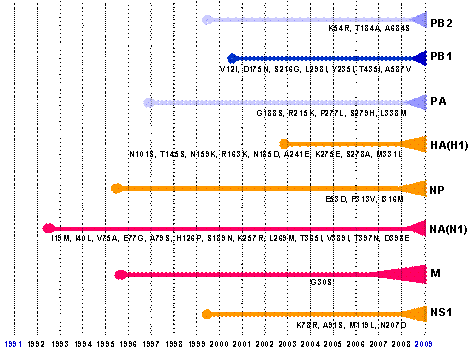 48.Nelson MI, Viboud C, Simonsen L, Bennett RT, Griesemer SB, St George K, Taylor J, Spiro DJ, Sengamalay NA, Ghedin E, Taubenberger JK, Holmes EC (2008) Multiple reassortment events in the evolutionary history of H1N1 influenza A virus since 1918. PloS Pathog 4(2): e1000012.