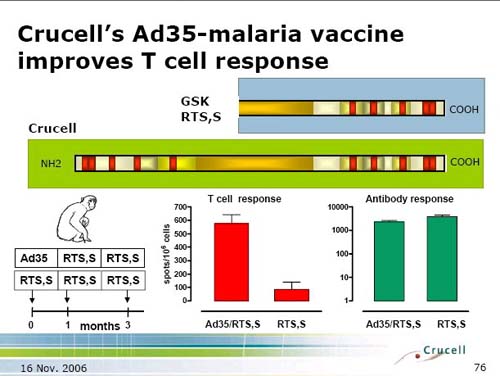Mục đích nghiên cứu lâm sàng được thực hiện trên 894 em bé ở Tanzania và Kenya là để đánh giá độ an toàn và hiệu quả của dạng vaccin RTS, S/AS 01. Dạng vaccin này được phối hợp với những chất hỗ trợ khác, những chất được thêm vào vaccin để làm tăng cường tác dụng của nó. Kết quả của những thử nghiệm đã cho thấy RTS/AS01 làm giảm 53% số ca sốt rét trong một thời gian theo dõi 8 tháng. Những kết quả thử nghiệm một dạng vaccin khác năm 2007 đã không vượt quá tỷ lệ 37% về hiệu quả giảm nguy cơ. Do những kết quả thu được trong những công trình nghiên cứu pha 2 này, một nghiên cứu giai đoạn 3 trên một số lượng người tình nguyện lớn hơn theo dự kiến sẽ được bắt đầu trong một tương lai gần.