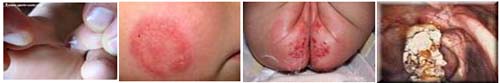 Candidiasis | - Vết thương riêng rẽ hoặc lan rộng