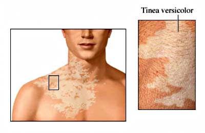 Bệnh nấm da nông được hạn chế ở lớp ngoài cùng của da và tóc. Một ví dụ về bệnh do nấm đó là bệnh nấm da nhiều màu (Tinea versicolor- bệnh nhiễm nấm trên da tạo ra những đốm có màu vàng hoặc màu nâu vàng), bệnh do nấm này ảnh hưởng đến da ở những người trẻ tuổi, đặc biệt là ở ngực, lưng, đầu ngón tay và chân. Tinea versicolor gây ra bởi các nấm sống trên da ở những người trưởng thành. Nó thường không tác động đến vùng mặt. Hình dạng của nấm là một chấm giống như ngọn lửa hơn là da hoặc có màu nâu hơi đỏ. Nấm này tồn tại ở hai hình thái, một trong hai hình thái đó là những vết có thể thấy được. Các nhân tố có thể góp phần làm cho bệnh nấm trở nên nhìn thấy rõ ràng hơn bao gồm độ ẩm cao, người có bất thường về miễn dịch và hormon. Tuy nhiên, hầu hết những người có tình trạng này đều khỏe mạnh.
